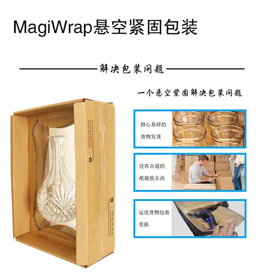 MagiWrap懸空包裝一款具有創(chuàng)新思維的保護包裝設(shè)計,采用高強度、高彈性薄膜來定位物品,保證被包裝物在整個運輸途中反復(fù)跌落后免受損壞。
